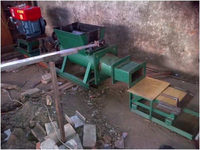 Spesifikasi : -> Penggerak mesin Diesel 24-26 PK.-> Ukuran Bata bisa sesuai permintaan sebagai contoh 24 cm x 11 cm tebal 4,5 cm.-> Sekali cetak-potong 3 atau 2 tergantung tebal bata yang dikehendaki.-> Transmisi menggunakan Gardan Mobil.